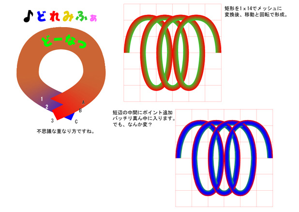 ドーナツは重なり部の面(点)の高さが、I .矩形の制作順・