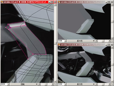 まずは、大きな部分からです。このように分けて描くと、複雑なパーツも描き易くなりますね。