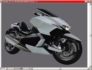 エンジン後方のケーシング箇所をメッシュで描き、その上に単色パスで切り欠きを入れます。