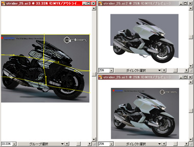 カウルの下に見えるボルトの頭を、カウルを描いたレイヤーの下に描写してやっと車体が完成しました。