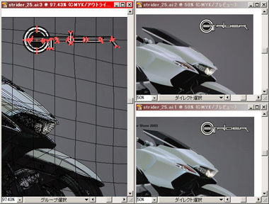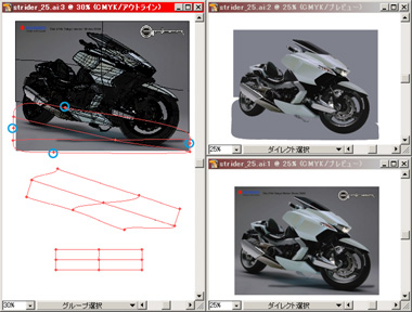 色の境目にメッシュを追加して、最後にスマートガイドを使って輪郭を合わせています。